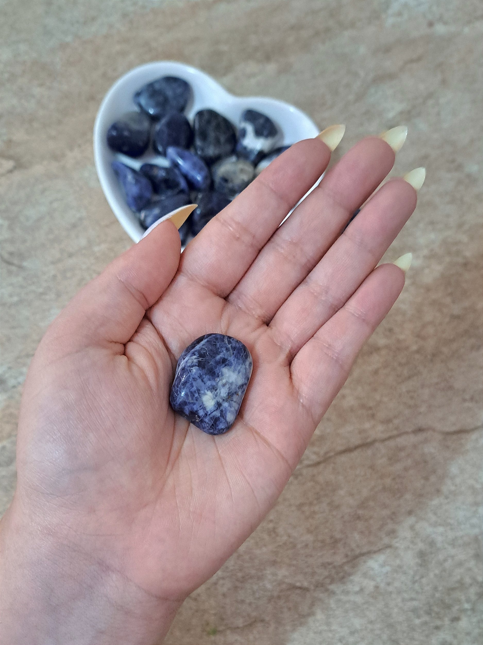 Significado da sodalita: pedra do mental e da consciência. Auxilia no estimulo da criatividade, fluidez e liberdade dos pensamento intuidos pela inteligência. Abre caminho para grandes realizações e mudanças necessárias. Excelente para o fortalecimento da comunicação com o plano espiritual, além claro de equilibrar sua comunicação interna! Pois trata-se da pedra que corresponde ao chakra laríngeo (garganta). Traz inspirações mágicas e fortalece a intuição.